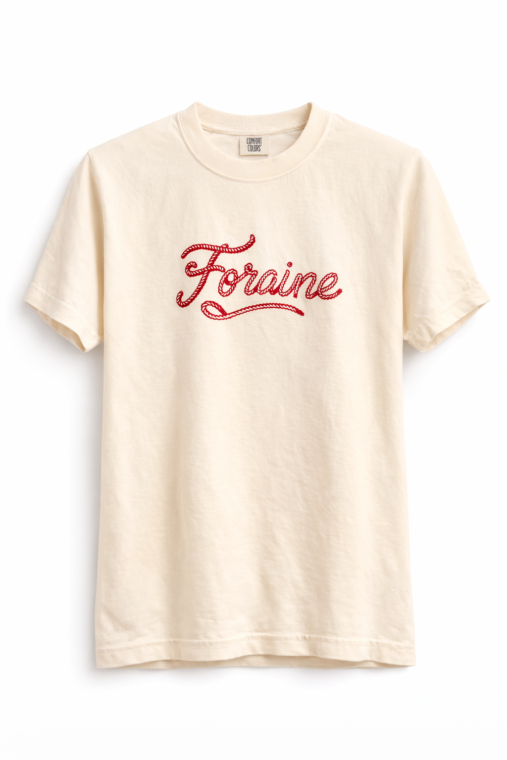 T-Shirt beige avec le logo "Foraine" imprimé sur le torse.